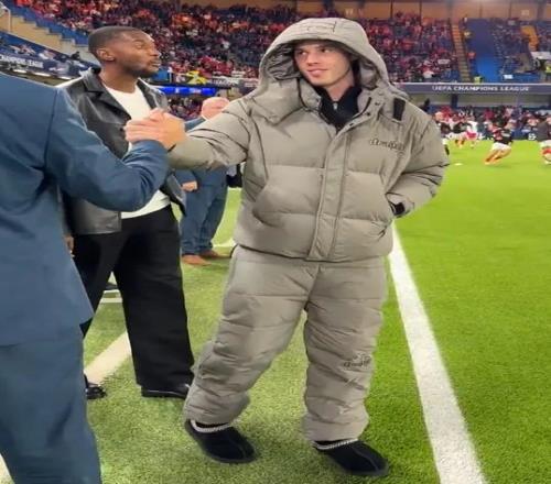 帕尔默穿着一套蓬松的同款外套和裤子,头戴连帽在场边观战,脚上还穿着类似雪地靴的鞋子。 一位球迷在社媒上评论:“哥们穿得像米其林轮胎人。” 另外一位球迷说道:“他是在月球上吗?” 帕尔默并非唯一被球迷调侃的球员,可以看到阿达拉比奥尤出现在帕尔默身后,身穿皮夹克和宽松的黑裤子。 一位球迷开玩笑说:“帕尔默和他的保镖。” 当天早些时候,有人看到帕尔默观看切尔西U19队对阵本菲卡U19的青年队比赛。在那次露面中,他穿了一套较薄的黑色运动服,但想必是觉得冷了,所以在观看重要赛事时换上了一套更厚重的行头。 【上咪咕独家看英超】 |