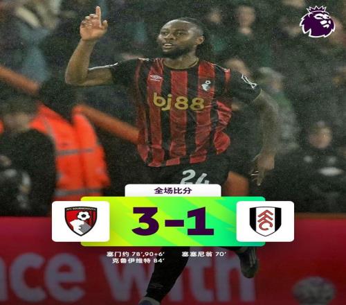 英超第7轮的一场比赛展开争夺,伯恩茅斯在主场迎战富勒姆。本场比赛伯恩茅斯排出了4231阵型。埃万尼尔松顶在最前面。布鲁克斯、塔韦尼耶和塞门约的进攻组合联袂出击。泰勒-亚当斯和亚历克斯-科斯特组成双后腰。詹姆斯-希尔、迪亚基特、塞内西和特吕费尔4后卫首发出战。彼得罗维奇担任首发门将。伯恩茅斯首发阵容总身价2.29亿欧元。而富勒姆首发阵容总身价1.87亿欧元。 比赛开始不久,泰勒-亚当斯就获得了机会,他在禁区前沿低射近角,结果被门将扑了出去。第14分钟,富勒姆就不得不进行被动换人调整。凯尔尼替补上场,卢基奇被换下。9分钟后,凯尔尼的远射踢高了。第42分钟,塞门约在禁区左侧起脚低射,门将倒地把球扑了出去。半场结束,伯恩茅斯0-0富勒姆。 下半场易边再战。第53分钟,埃万尼尔松的一脚低射再次被门将化解。6分钟后,威尔逊的一脚凌空抽射被门将神勇扑出。第61分钟,伯恩茅斯率先进行换人调整。阿莱士-希门尼斯和克鲁伊维特替补上场。第70分钟,场上的僵局终于被打破!富勒姆进球了!丘库埃泽送出直塞球,塞塞尼翁前插,在禁区内获得直面门将的机会,他伸脚捅射破门! 第78分钟,伯恩茅斯扳平比分!塞门约在左侧强行带球过人,突入禁区,小角度低射,皮球从门将裆下穿过去,钻入球门!这粒进球完全是依靠个人能力!6分钟后,伯恩茅斯再进一球!克鲁伊维特轰出一脚无解世界波!伯恩茅斯反超比分!第96分钟,伯恩茅斯又进球了!依然是塞门约,他在禁区内包抄推射打进,杀死比赛!最终的比分定格为3-1,伯恩茅斯逆转击败富勒姆! 25岁天才塞门约无疑是全场最佳,他独造3球,包括2进球1助攻!伯恩茅斯真是超级大黑马,7场联赛取得4胜2平1负的好成绩,拿到了14分,力压阿森纳,升到了第2的位置,只比利物浦少1个积分。不过,伯恩茅斯多赛一场。伯恩茅斯创造了队史同时期最高英超排名纪录。 |