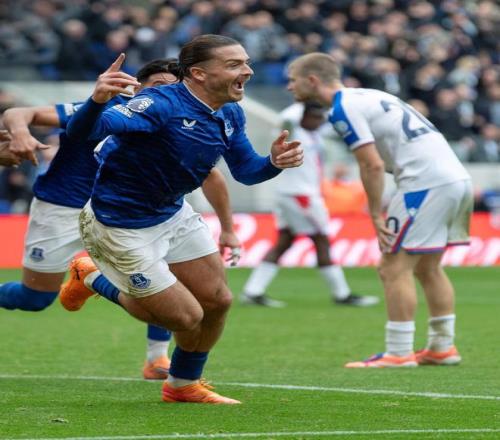 比赛第96分钟,终场哨声即将响起,双方1-1僵持。就在所有人以为战平已成定局时,埃弗顿右路的一次传中造成禁区混乱,水晶宫的穆尼奥斯从英雄变为“罪人”,慌乱解围,却阴差阳错地把球踢在格拉利什身上,皮球弹射入网!进球之后,格拉利什没有压抑任何情绪,他跪地怒吼、双拳捶胸,整座古迪逊公园在这一刻化为蓝色海啸。