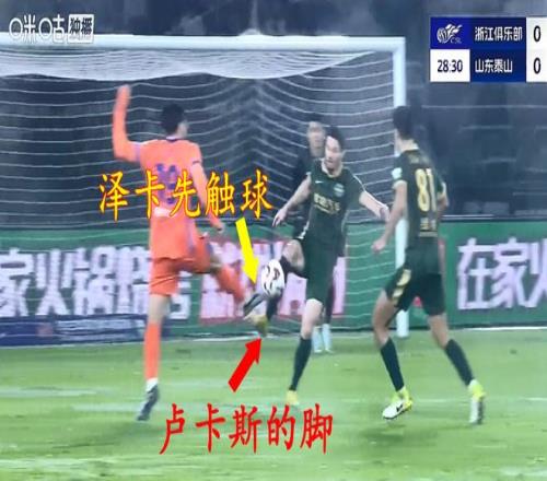 如果说这个视频截图不可靠,可以看本文第一张动图。从动图中看到,泽卡触球后,皮球改变路线开始飞向卢卡斯左手的方向。可见这球根本不是卢卡斯自己解围打到自己手臂,而是泽卡踢球打到的。如果是这样,那么这就应该判罚点球。 有VAR也没看清是谁先碰到球?也许是主裁判看错了吧!上半场双方踢成1比1,如果再来一个点球,山东泰山或许就是2比1领先了。反而是下半场开始后浙江队再进1球以2比1领先。
