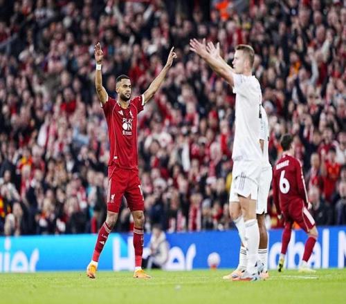 | 在2025-26赛季英超第8轮,利物浦主场对阵曼联。在三次击中门柱之后,加克波成功“吃饼”,第4次攻破曼联球门。