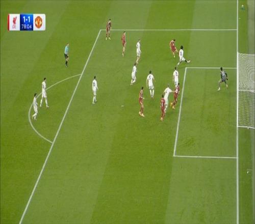 加克波此役运气差到了极点,前49分钟居然三次击中立柱,完成了中柱帽子戏法。比赛的第60分钟,斯洛特连换3人,维尔茨、埃基蒂克、琼斯出场换下麦克阿利斯特、格拉文贝赫、布拉德利第72分钟再次用基耶萨换下了伊萨克。 斯洛特的换人,以及坚持将加克波留在场上,也得到了巨大的回报。第77分钟,维尔茨分球,基耶萨似传似射,加克波小禁区将球推入空门,1比1!