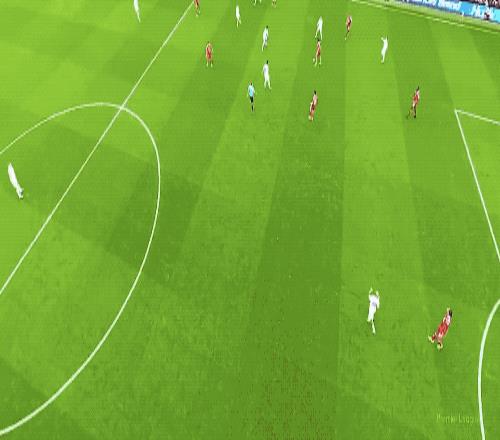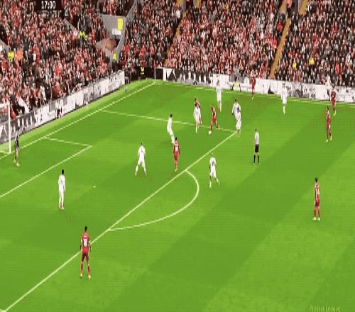 第18分钟,萨拉赫和伊萨克打出精彩配合,关键时刻,卢克肖倒地放铲,化解险情。