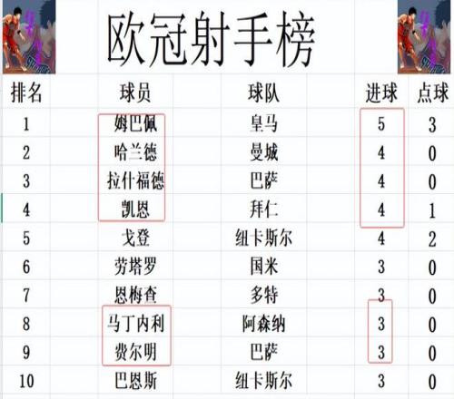 射手榜方面,姆巴佩5球继续稳居榜首,哈兰德,戈登破门,拉什福德双响,三人追上凯恩4球并列第2。费尔明上演帽子戏法,和劳塔罗,恩梅查,马丁内利等人将前十门槛提高到3球。 |