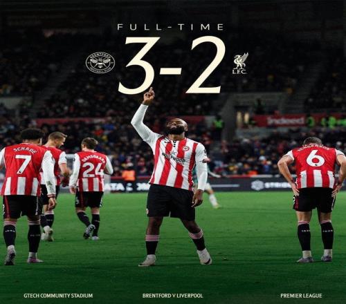 下半场易边再战,第58分钟,瓦塔拉带球突入禁区被范戴克放倒,主裁判经VAR确认点球,伊戈尔-蒂亚戈主罚命中,3-1! 第89分钟,索博斯洛伊送出横传,萨拉赫抽射破门,比分3-2! 至此,利物浦客场2-3不敌布伦特福德,遭遇英超4连败,9轮积15分跌至联赛第6,被死敌曼联反超!