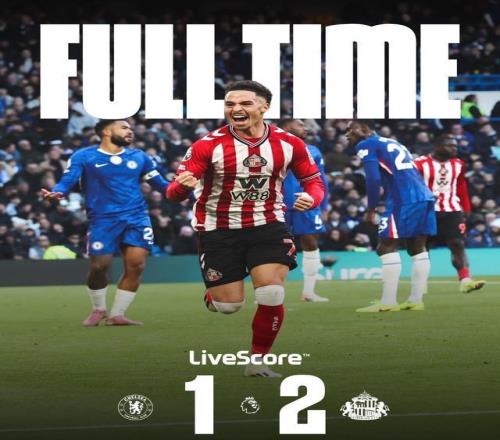 下半场补时第3分钟,布罗贝伊送出传球,塔勒比跟进低射绝杀,1-2! 全场战罢,切尔西主场1-2遭遇失利,各项赛事4连胜终结,9轮积14分来到英超第8。 桑德兰成功收获英超2连胜,时隔11年半客场击败蓝军,上次已是2014年4月了,当前9轮积17分升至第2,创下队史英超前9轮最高积分纪录,距离榜首球队阿森纳只差2分!