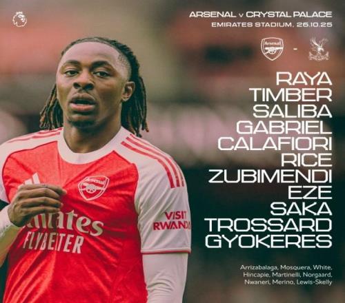 | 【首发】阿森纳迎水晶宫:埃泽战旧主 英超 10-26 20:51 北京时间10月26日20:00,英超第9轮,领头羊阿森纳主迎强队拦路虎水晶宫。枪手公布先发,埃泽战旧主,萨卡、赖斯领衔,特罗萨尔先发。 阿森纳首发:拉亚/廷伯、萨利巴、加布里埃尔、卡拉菲奥里、赖斯、苏维门迪、埃泽、萨卡、特罗萨尔、哲凯赖什 替补:凯帕、莫斯克拉、本·怀特、因卡皮耶、马丁内利、内尔高、恩瓦内里、梅里诺、刘易斯-斯凯利