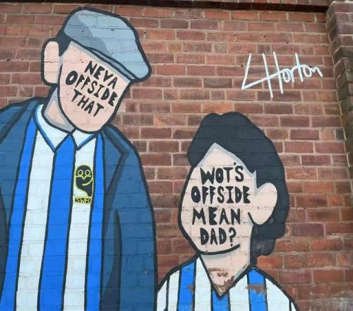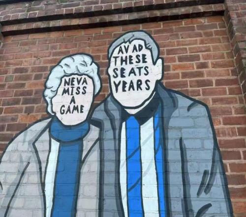 当每周看球成为一种习惯,距离、交通、时间可能都不是问题。每周和季票坐席身边的bro的一期一会可能更重要。无论你对球队的了解有多少,有没有做功课、看报纸、关注社交媒体、刷懂球帝(强烈建议刷),一路上都可以有聊不完的话题。这些话题很可能不限于足球,球迷之间的距离、足球和生活的边界都在这来去的时时刻刻里消弭。甚至,和你走在同去球场路上,和你戴同样围巾、同款帽子、球衣印同一个号码的老哥可能都没有一张门票,他就是来球场隔壁的酒吧度过一个热血沸腾的下午或晚上。你以为他说的三里屯附近就是工体的方向,没想到他真的只去三里屯。 如果携带第一次来观赛的家眷,那更是一个良性mansplaining(“爹味说教”)的大好时机,一切对对方来说可能都是崭新的,包括你,如一个萎靡不振的宅男可能也有激情四射的一面。但友情提示:她让你闭嘴的时候还是记得及时闭嘴。 看球是一件可以陪伴一生的兴趣。走在谢周三希尔斯堡球场外的围墙看到这样一副涂鸦,便会理解足球为什么可以是、会是或者真的是生活的一部分?