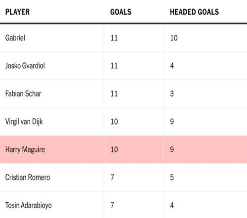 “这对他来说可能是一件很自然的事。”曾在1989至1998年间随曼联赢得九项重要荣誉的前中卫加里·帕利斯特说,“作为队里一直以来最高的球员,人们就期望你在争头球时压上去,而他在曼联也做得很好。” 马奎尔能以不同方式攻入头球。 周日对利物浦的进球与他上赛季对里昂的那球类似:当球从左路传入,他跑到后点抢点;对格林斯比时,他勇敢地俯身抢角球以头球得分;而在对伊普斯维奇的比赛里,他又在禁区中央从角球中抢到球并攻门得手。