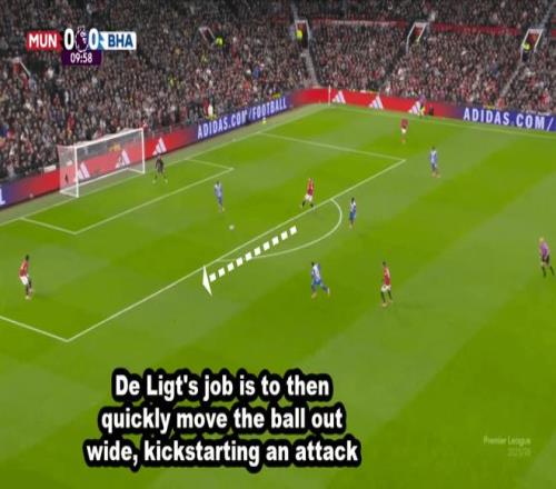 而数据显示,赛季初的曼联阵容变化极大,20人次的首发人员调整,在英超各队中排名第五。而现在「竞技网」称,至少有7个位置的主力人选,阿莫林已经胸有成竹。但球队仍然有几个位置的情况不太明确,尤其是左边翼卫,无论帕特里克·多古、迭戈·莱昂还是迪奥古·达洛,都无法令人满意。 守门员塞纳·拉门斯是最新一个锁定主力位置的球员,而他的地位迅速稳固下来。这位23岁的比利时球员最近3场比赛才打上主力,却可能在赛季剩余的所有比赛继续稳坐1号位。他扑救稳定,出击果断,能很好地限制对方进攻球员,甚至在一对一的局面下完成神扑。他也善于沟通,能够使后卫们保持专注。阿莫林将门将的传球调整为长传,也让拉门斯不必受困于对手的高位逼抢。 中后卫德里赫特首发参与了本赛季曼联所有英超比赛,卢克·肖也是如此。然而,一旦利桑德罗·马丁内斯伤愈复出,卢克·肖的左中卫位置可能受到挑战。同样的情况不会发生在镇守三中卫中路的德里赫特身上。有趣的是,德里赫特2016/17赛季在阿贾克斯出道以来,每个赛季开局效力的主帅都与前一赛季开始时不同,他希望下赛季不必如此。德里赫特拥有出色的头球,虽然覆盖场上大范围区域时他的表现不如莱尼·约罗,但曼联现在的打法可以让他扬长避短。 阿莫林本赛季基本将阿马德·迪亚洛主要固定在右边翼卫的位置上,发挥他的盘带能力。最初,阿马德与同为左脚的姆贝莫有些重合,但他们逐渐适应了彼此的节奏。通常情况下,姆贝莫更多往中路靠拢,而将右路让给阿马德。现在,唯一能让阿马德无法为曼联首发的事情,只有年底的非洲国家杯。
