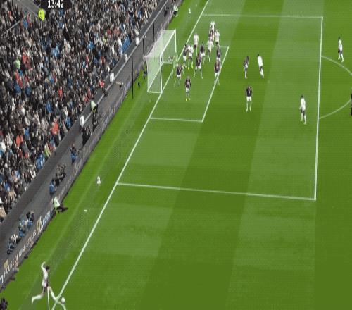 赖斯主罚,加布里埃尔后点助攻,约克雷斯头球破门,打进了个人英超的客场首球。