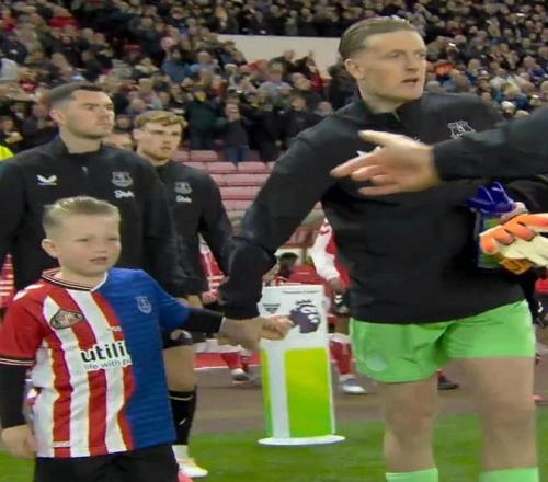 皮克福德对阵母队桑德兰,其儿子身穿桑德兰+埃弗顿拼接球衣