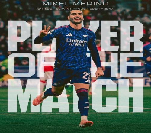 | 在今天凌晨进行的欧冠联赛阶段第四轮比赛中,阿森纳客场3-0击败布拉格斯拉维亚,赛后,梅里诺被阿森纳评为本场比赛队内最佳球员。