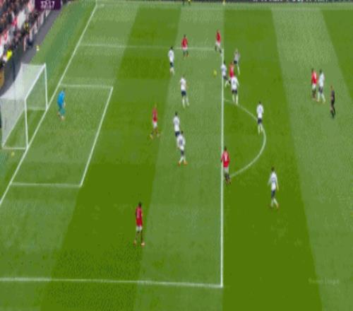 曼联的进攻连续施压,多古左路传中,热刺解围之后,曼联组织二次进攻,库尼亚传球,迪亚洛再次传中,姆贝莫头球攻门得手,曼联1-0领先!