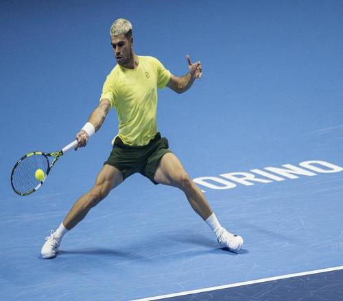 阿尔卡拉斯在比赛中。 ATP年终总决赛:阿尔卡拉斯迎来开门红 11月9日,ATP年终总决赛吉米·康纳斯组迎来首轮较量,头号种子阿尔卡拉斯2比0击败7号种子德米纳尔,迎来开门红。 此前双方有过4次交锋,阿尔卡拉斯保持全胜。此役首盘双方打得异常激烈,阿尔卡拉斯在关键分的处理上占据优势,这才7比6拿下首盘;第二盘阿尔卡拉斯延续稳定的状态,反观德米纳尔似乎失去了心气,阿尔卡拉斯兵不血刃以6比2获胜,本赛季第3次击败德米纳尔。 值得一提的是,第三次出战总决赛的阿尔卡拉斯还是第一次在赛事首战获胜,接下来他将迎战弗里茨赫穆塞蒂,如果能够在小组赛收获三连胜,就可以提前锁定ATP年终第一的排名。 阿尔卡拉斯高歌猛进,传奇选手德约科维奇则受困于伤病,在刚刚拿下ATP雅典250赛冠军后,这位老将通过社媒宣布自己退出今年的ATP年终总决赛。 “我希望以一个最好的状态去都灵参加年终总决赛,但今天在雅典的比赛后,我遗憾地宣布我将因伤退赛,对于支持我的粉丝,我感到非常抱歉,我希望所有参赛选手可以打出精彩的一站比赛,我也期待着尽快重返赛场。”