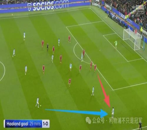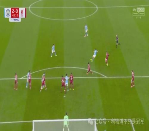 曼城27分50秒左右反击到利物浦左路,由于盯防切尔基的罗伯逊被拉到中路,而曼城攻击到利物浦左路时,左中卫范迪克被迫补防到左后卫位置,这是曼城本场针对利物浦的战术之一,就是要让范迪克离开利物浦中路!