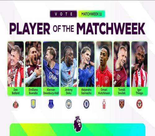 | 北京时间11月10日,英超官方公布了第11轮比赛最佳球员的候选名单,其中多库、加纳乔、布恩迪亚、巴拉德、迪尤斯伯里-霍尔、哈钦森、绍切克、伊戈尔-蒂亚戈在列。