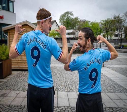 盖尔·马格努斯·桑德维是布吕讷的死忠球迷,他心爱的主队直到1926年才成立,“农民不踢足球”是他分析的原因。对于位于农业发达的西南部耶伦地区的这家挪威足球俱乐部来说,他们正在经历许多重大的时刻。 上赛季,他们在5000名观众塞满的体育场里,22年来首次重返顶级联赛。在3月份的新赛季开始前,人们的兴奋之情日益高涨——球迷们希望球队能够重回1987年在奥斯陆赢得杯赛以来未曾有过的巅峰——如果不是因为埃尔林·哈兰德的崛起,那原本会被视为俱乐部的最高成就。 在充满激烈对抗和唇枪舌战的英格兰足球世界里,本赛季哈兰德的光芒似乎有所黯淡。人们很容易忘记,在过去两个赛季夺得英超金靴后,他目前在英超射手榜上仍然仅次于穆罕默德·萨拉赫。24岁的他是挪威国家队历史上的头号射手(39场比赛打进38球),也是欧冠、英超和奥地利联赛的冠军得主。我六岁儿子欧内斯特所在的学校操场,不再能听见关于梅西和C罗喋喋不休的争吵,取而代之的是“哈——兰——德”的呼喊声。
