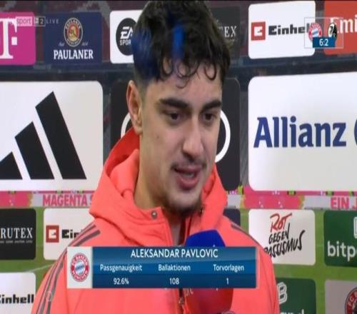 | 当地时间11月22日,拜仁慕尼黑在德甲中以6-2的比分战胜弗赖堡。赛后,拜仁慕尼黑球员帕夫洛维奇接受了采访。