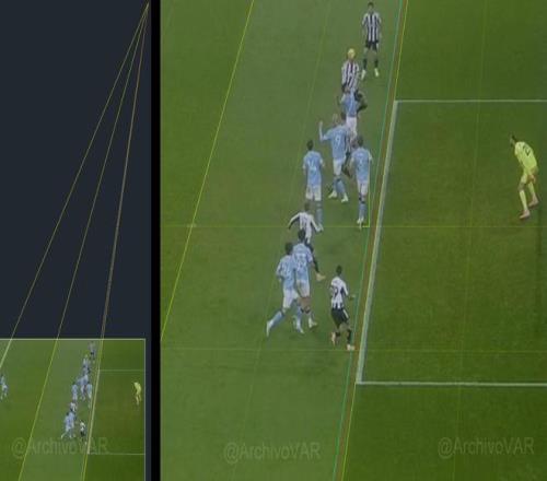 VAR在这个进球发生之后进行了长时间的分析,并最终给出了进球有效的判定,但专注于分析各类赛事VAR工作的西班牙博主Archivo VAR在赛后对于这个进球的越位判定提出了质疑。 裁判组在进行越位判定时认为曼城后卫鲁本-迪亚斯的位置是导致第一次参与射门的吉马良斯并不越位的原因,然而通过Archivo VAR发布的传球瞬间透视分析图可以看出,吉马良斯的脚尖实际上已经明显越位。