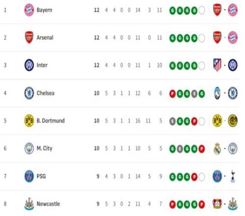 比利亚雷亚尔:奇迹待续 黄色潜艇的欧冠回归之旅近乎噩梦:五轮仅取1分,理论最高积分仅10分(需剩余全胜),已低于上赛季季后赛门槛。 剩余对手哥本哈根(主场)、阿贾克斯(主场)与勒沃库森(客场)虽存抢分可能,但晋级需要多重奇迹叠加。 直接晋级16强球队(当前前8名): 拜仁慕尼黑、阿森纳、国际米兰、切尔西、多特蒙德、曼城、巴黎圣日耳曼、纽卡斯尔联 进入附加赛球队(第9-24名): 皇家马德里、利物浦、加拉塔萨里、热刺、勒沃库森、葡萄牙体育、巴塞罗那、卡拉巴赫、亚特兰大、那不勒斯、马赛、马德里竞技、尤文图斯、圣吉罗斯、埃因霍温、摩纳哥 最后12名: 帕福斯、布鲁日、法兰克福、毕尔巴鄂竞技、本菲卡、布拉格斯拉维亚、博多闪耀、奥林匹亚科斯、比利亚雷亚尔、哥本哈根、凯拉特、阿贾克斯。 |