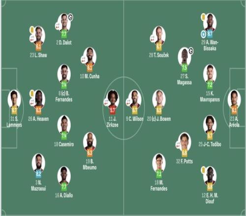 出场阵容 曼联(3421):31-拉门斯;3-马兹拉维,26-海文(46’15-约罗),23-卢克肖(88’6-利马);16-迪亚洛,18-卡塞米罗,8-B费,20-达洛特(68’13-多古);19-姆伯莫,10-库尼亚(77’25-乌加特;11-齐尔克泽(78’7-芒特) 西汉姆联(4231):23-阿雷奥拉;29-万比萨卡,15-马夫罗帕诺斯,25-托迪博,12-迪乌夫;32-波特斯,27-马加萨;28-绍切克,20-鲍文,18-马特乌斯;9-威尔逊 |