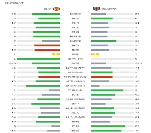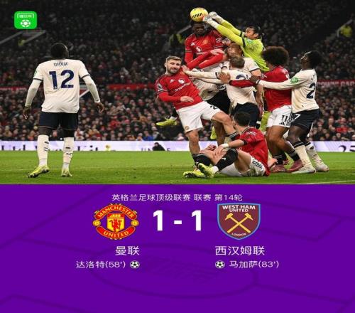 北京时间12月5日,英格兰足球超级联赛第14轮,曼联坐镇主场迎战西汉姆联。上半场,姆伯莫兜射被阿雷奥拉飞身救险,齐尔克泽撞射被万-比萨卡门线解围,B费凌空二踢脚中柱;下半场,卡塞米罗打门被挡后达洛特补射入网,鲍恩头球被解围后马加萨补射扳平。最终,双方以1比1握手言和。