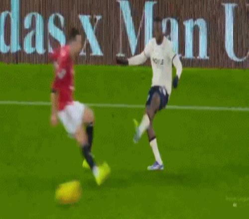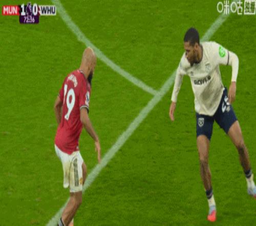 第37分钟,迪乌夫对阿马德连拉带踢,裁判向其出示黄牌