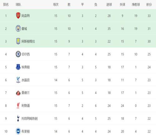 英超悲喜夜:曼城30距榜首2分阿森纳12被绝杀利物浦33被绝平