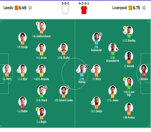 第48分钟、第50分钟,埃基蒂克梅开二度。第73分钟,科纳特送点,勒温扳回一城。第75分钟,斯塔赫扳平比分。第80分钟,索博斯洛伊破门。第97分钟,田中碧完成绝平,最终,利物浦3-3战平利兹联,最近5轮只有1胜,最近10轮只拿到8分,暂时排名第八。 【比赛焦点】 第15分钟,利物浦持续发动猛攻,琼斯的兜射击中门框,埃基蒂克的射门被挡了一下,弹出底线。
