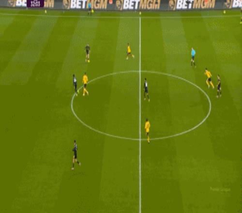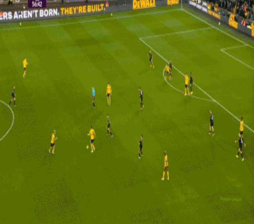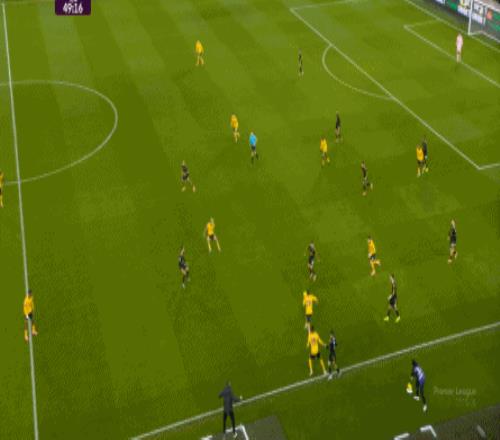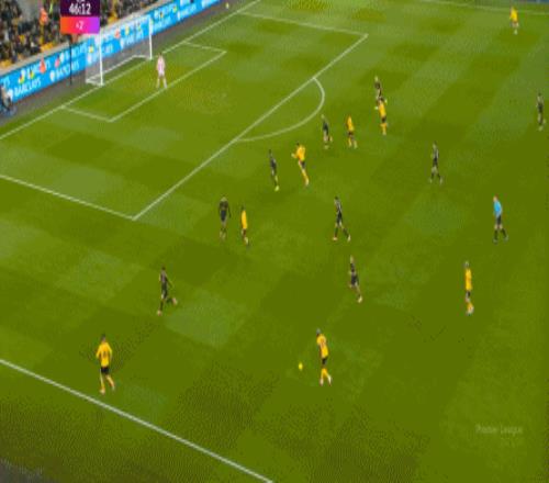 所以,上半场的曼联其实完全有机会扩大比分,但随着战术结构的变化,加上状态的自然回落,不光是库尼亚等人,连此前状态火热的姆贝乌莫也难免在门前失准。 这就不是一个好消息了,因为曼联的后卫线一向没有多么保险,尤其是在最近这段时间。 丢球之后,狼队的反扑逐渐上线,通过中场区域的争夺得手之后,同样使用343阵型的狼队也将方向瞄准到了曼联的两肋: