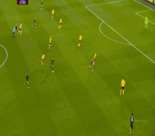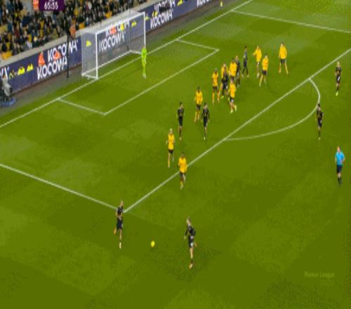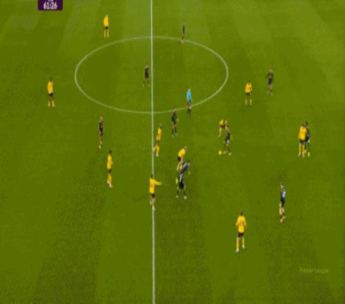 这样一来,球队的进攻就难免瘸腿,比较需要捕捉天然的空间,而在这个时候,狼队的施压也确实能形成一点作用。 从线路上来说,狼队的进攻仍然具备条理,比如这两次尝试,引出卢克-肖的位置之后,再打海文的意图就很清晰: