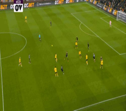 于是在狼队将球打回到左路的时候,阿玛德-迪亚洛已经无法参加防守,而在线路上,狼队这次也选择了倒三角,打到了曼联在防守端的意识薄弱之处,就此扳平了比分。 从半场的结果来说,这看起来又要变成一个让曼联球迷失望的凌晨了,但从过程来说,球队显然还能支撑得住。 因为狼队的进球明显有着曼联自己的重大失误的参与,而他们的其他进攻,则带有明显的不足,球员们的确很努力,战术执行得不差,但前场缺少核心,导致关键球的处理上没有什么精准度。 这是缺少优秀球员的典型特征,这当然是因为他们的优秀球员被曼联直接挖走,但夏窗没有补充,则是他们自己的问题了。 所以,曼联只要卸掉紧张情绪,下半场依然优势在我,加上球队还有替补席上的其他选择,拉长到90分钟的长度,拿下这场比赛的难度并没有多大。 因此到了下半场,随着库尼亚继续支撑球队的进攻,曼联一上来就在创造攻门机会,信心因此重建起来: