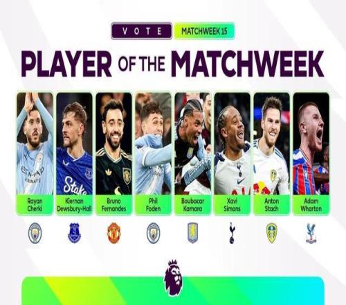 | 北京时间12月9日,英超官方公布了联赛第15轮最佳球员候选名单,这8名球员为谢尔基、霍尔、布鲁诺-费尔南德斯、福登、卡马拉、哈维-西蒙斯、施塔赫、亚当-沃顿。