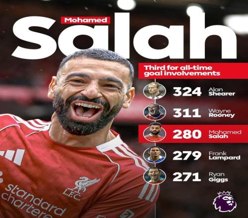| 英超第16轮,利物浦主场对阵布莱顿,下半场萨拉赫助攻埃基蒂克破门,至此,萨拉赫英超生涯已直接参与280球,这使得他超越兰帕德,独占英超历史参与进球榜第三位。