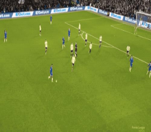 第22分钟,切尔西继续加强进攻,加纳乔简单晃动过后的爆射没能命中目标。