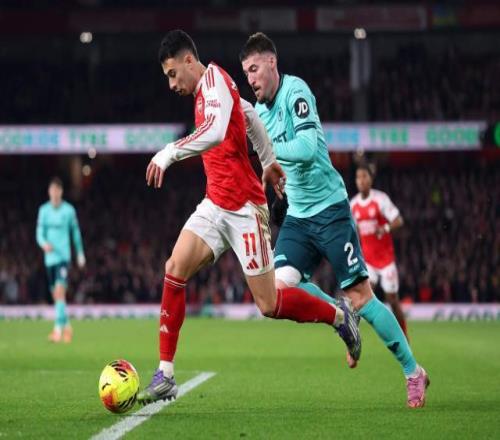 鉴于比赛过程很难让人满意,检讨大会还是可以先开起来:打个狼队都这么费劲,阿森纳的毛病在哪里?赛后主帅阿尔特塔主要批评了防守,而球迷恐怕更在意进攻——对面可是本季英超丢球最多的球队,场均失球接近2.2粒,至于单靠自己人就打不开局面吗?一个重要的尴尬点在于,阿森纳上半场竟然没有一脚射正门框范围的攻门,这在本赛季还是首次。其中4次射偏,2次被后卫封堵,总数量其实也不是很多。 关于这一点,阿尔特塔赛后看似想幽默但并不幽默地解释了一句:“好吧,应该是我们选错了球衣的颜色。”像是想把问题推给运气。这倒也不全错,毕竟马丁内利又让我们见识到了他在欧冠和英超就是两种版本:前一场对布鲁日内切远射精准无比,面对狼队却是门前连失机会,不是近在咫尺的头球用力过猛顶飞,就是小禁区抢点弹射没对好准星。 其实就看表面,此役阿森纳的布阵、人员都不难挑出点毛病,首发“不善应对阵地战”的马丁内利便是其一。此役狼队原本以守为主,上半时控球率仅有26.3%,但收缩到低位后也让枪手有些施展不开。主队仅有的少量精彩镜头,大都源自定位球进攻,上述马丁内利的两次“捡漏失败”便是如此。