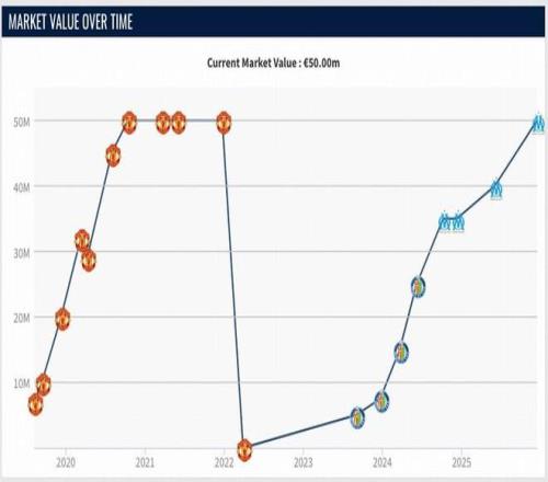 2020年10月,年仅19岁的曼联小将格林伍德身价达到5000万欧,并且维持了一年。但是由于涉嫌强奸和家暴,格林伍德在2022年初被逮捕,转会市场身价也在2022年3月清零。2023年2月,格林伍德的指控被撤销。