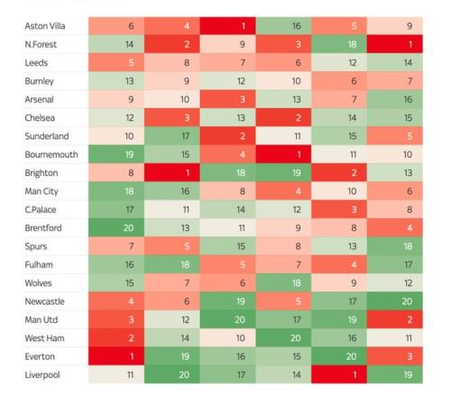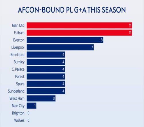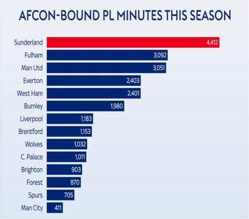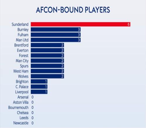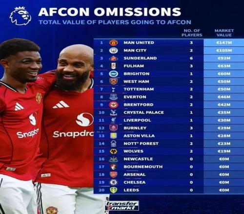| 2025非洲杯本周末将拉开帷幕,参加这届赛事的英超球员已经前往各自的国家队报到,被征召的球员最多可能缺席一个多月。那么,哪些英超俱乐部受到的影响最大,哪些俱乐部受到的影响最小呢? (英超各俱乐部参加非洲杯的球员) 本届非洲杯,共有32名英超球员参加。如上图所示,“黑猫”桑德兰受影响最大,共有六名球员被征召。 阿森纳球迷很幸福,因为这一次“枪手”没有球员参加非洲杯。其他还有五支英超球队也不会受到非洲杯的影响,分别是利兹联、伯恩茅斯、纽卡斯尔联、切尔西与阿斯顿维拉。 被征召的球员多是一回事,被征召的是重要球员又是另一回事。就参加非洲杯的球员上场时间而言,桑德兰再次成为受影响最大的球队。 他们此次被征召的六名球员本赛季在英超联赛中总共出场4412分钟。21岁的中场萨迪基联赛16轮全部首发,出场时间达到了1414分钟;其他球员中,雷尼尔多、塔尔比和特拉奥雷也都是主帅勒布里斯的爱将,出场时间都不少。 富勒姆和曼联位列第二与第三,这两支球队被征召的球员在英超中出场时间都超过3000分钟。相较之下,曼联受影响要比富勒姆大,因为他们被征召的都是核心“大腿”,一位是新援姆贝乌莫,本赛季这位喀麦隆前锋在联赛出场1404分钟,有6粒进球入账。另一位是科特迪瓦边锋阿马德·迪亚洛,本赛季至今,他攻入2球还送出2次助攻。第三位是摩洛哥后卫马兹拉维。据德转统计,本届非洲杯英超球队参赛球员总身价榜,曼联这三人以1.47亿欧元排在首位。 曼联阵中,姆贝乌莫与迪亚洛是阿莫林体系中右路的生命线。对于两人的被征召,曼联并不是没有准备。早在本周二那场与伯恩茅斯惊心动魄的4比4比赛中,曼联主帅阿莫林已经在悄悄尝试新阵型了。那场比赛中,阿莫林将三后卫阵型改为四后卫,这是一个重要的战术调整,能看得出阿莫林做好了接下来一段时间没有迪亚洛和姆贝乌莫的准备了。 (对阵伯恩茅斯前 阿莫林偏爱3421阵型) (对阵伯恩茅斯中 阿莫林变阵四后卫) (曼联和富勒姆被征召的球员都参与了11粒进球) 最后再来看一下,在接下去的一个月时间内,根据对手的联赛排名,英国媒体对各俱乐部接下来六场英超的赛程进行的难易度评估。 单从排名来看,阿斯顿维拉赛程最为艰难;而利物浦之后六轮的赛程最为轻松。 |