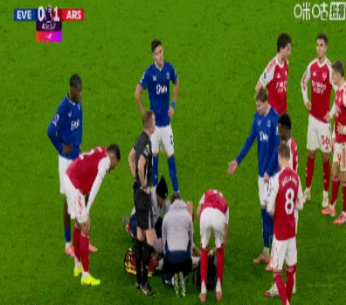 独家看英超就在咪咕 第45+1分钟,卡拉菲奥里争顶摔到后脑勺,队医赶紧上场治疗