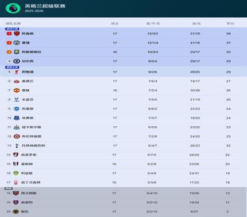 阿森纳客场1-0战胜了埃弗顿,英超联赛积分39分。