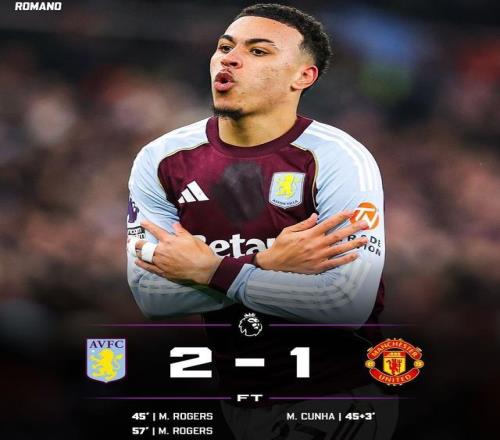 比赛过程跌宕起伏,曼联凭借57%的控球率和15次射门看似占据场面优势,库尼亚在上半场补时第3分钟的扳平一度看到拿分希望。 摩根-罗杰斯面对曼联上演梅开二度,成为了维拉的获胜功臣,先是在第45分钟左路内切后一脚兜射直挂死角,下半场第57分钟禁区左侧兜射破门!