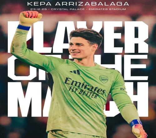 | 英格兰联赛杯1/4决赛的最后一场较量中,阿森纳点球大战击败水晶宫成功晋级。赛后,阿森纳官方宣布门将凯帕当选本轮联赛杯队内最佳球员。