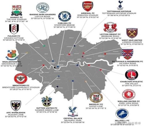 先看看一张图,来自伦敦,或者大伦敦的球队有很多,每年的顶级联赛,都有很多场伦敦德比。本赛季的英超,阿森纳、切尔西、水晶宫、布伦特福德、富勒姆、热刺和西汉姆等球队,都是伦敦圈子的一员。 英超元年的创始成员中,女王公园巡游者和温布尔登,也是来自伦敦。温布尔登后来易地改名,重新建立一支AFC温布尔登,对于女王公园巡游者,曼城和曼联球迷不会陌生,曼城的首座英超冠军奖杯,就跟这支球队很有关系,相信阿奎罗永远都不会忘记那个夜晚。