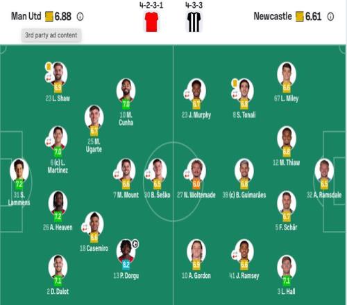 【出场阵容】 曼联首发:31-拉门斯、2-达洛特、26-海文、6-利桑德罗·马丁内斯(88’33-弗雷德里克森)、23-卢克·肖(88’12-马拉西亚)、13-多尔古、18-卡塞米罗(60’15-约罗)、25-乌加特、7-芒特(46’38-杰克·弗莱彻)、10-库尼亚、30-舍什科(60’11-齐尔克泽)。 曼联替补:1-巴延德尔、39-泰勒·弗莱彻、35-莱昂、70-本迪托·曼塔托。 纽卡首发:32-拉姆斯代尔、3-刘易斯·霍尔、12-佳夫、5-沙尔、67-麦利、8-托纳利(76’28-威洛克)、41-雅各布·拉姆塞(68’11-巴恩斯)、39-吉马良斯、10-戈登、23-雅各布·墨菲(68’7-乔林顿)、27-沃尔特马德(68’9-维萨)。 纽卡替补:1-波普、37-阿莱士·墨菲、61-沙哈尔、62-肖恩·尼夫、85-萨姆·阿拉比。 |