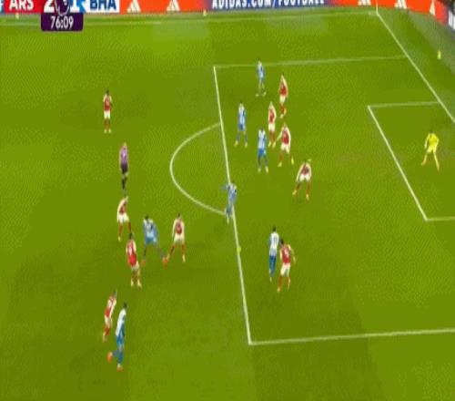 第76分钟,布莱顿再次踢出默契配合,明特禁区内起脚兜射,直取球门左上角,拉亚回敬极限扑救,飞身单掌托出横梁,救了阿森纳一命。 第82分钟,阿森纳进行第3次调整,马丁内利披挂出战,撤下特罗萨德。第85分钟,萨卡右路突破传中,马丁内利门前绝佳机会竟然打飞。