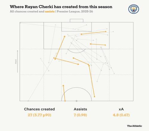 人们常指责佩普-瓜迪奥拉将其最具天赋的攻击手身上的灵动与才华“训练殆尽”,无情地固守一套优先考虑集体控制、而非个人闪光时刻的体系。 但在上周六他的曼城2-1战胜诺丁汉森林,取得英超六连胜并登上榜首(直到当天晚些时候阿森纳击败布莱顿)的比赛中,他必须感谢谢尔基那自由奔放的足球灵气。 “有些时刻我只想朝他大喊,”瓜迪奥拉赛后带着苦笑说道,“而有些时刻我想亲吻他。” 后一种冲动,出现在这位法国球员贡献一传一射,击溃森林队顽强抵抗,并在比赛尾声以曼城球迷早已习以为常的完美技术轰入关键制胜球之后。 如果说他在媒体前的倾倒之态还不够说明问题,那么瓜迪奥拉战术安排中日益增多的证据表明,连他也已然沉醉于谢尔基那如行云流水般的艺术足球,自从十一月初3-1战胜伯恩茅斯(当时他首次安排谢尔基与福登联袂首发)以来,瓜迪奥拉几乎再未变动过英超首发阵容,着重于用能与谢尔基进行配合的技术型球员来围绕这位22岁的年轻人。 “我必须允许他展现自己不可思议的天赋,”这位曼城主帅说道,“上半场,我们有太多球员留在球后面,而在前场肋部区域的人则较少。” 这或许是瓜迪奥拉迄今为止最清晰地表达了他对谢尔基在面对密集防守球队时所展现的即兴创造力的欣赏,也表明主帅正在尽其所能培育这种直觉性的、在紧逼下的细腻配合。 这对通常坚持在进攻三区执行既定套路的瓜迪奥拉而言,是一个微妙的转变。但谢尔基正在帮助瓜迪奥拉的球队赢得那些即使是他此前那支无往不胜的队伍也可能无法拿下的比赛。 谢尔基在进攻三区送出犀利传球的惊人能力,源于他左右脚皆精的非凡技术。但他移动皮球的方式同样精妙,经常通过加速、减速以及用脚的各个部位进行微小触球来左右晃动,意在打乱防守者的平衡。 他在比赛第20分钟创造了曼城的首次机会,用脚外侧旋出一记传球,让哈兰德得以完成一脚凌空抽射;两分钟后,他又几乎用一记插传为挪威人送出单刀,虽被拦截,但谢尔基等待的正是内科-威廉姆斯将身体重心移向封堵内线传球路线的确切瞬间,然后才尝试走外线,迫使这位边后卫急忙转身,做出一次惊险的封堵才阻止了皮球穿透防线。 谢尔基在进攻三区许多有威胁的传球都为接球者创造了直接起脚射门的空间,这绝非巧合。他在传入禁区的传球力度和角度上总是经过考量,常常以快速的插传令防守者措手不及,呆立原地。 上半场稍晚,他用一记撕裂防线的直塞球找到了空当中的蒂贾尼-赖因德斯。他先将球轻轻向前推,吸引防守球员靠近,等待空当出现,然后才将球从对手伸出的腿旁塞过。 尽管单看这并非一次高难度传球,但它有助于说明预判谢尔基的困难。他的技术能力使他能够在球处于任何位置——脚下、右侧或左侧——时都能挖出传球线路,而不暴露其意图。 在比赛的大部分时间里,瓜迪奥拉的球队难以在森林队紧凑的4-5-1阵型线条之间找到空当,因为摩根-吉布斯-怀特回撤中场,确保了曼城的后卫无法将球穿透性传出。但正是在这样的比赛中,谢尔基的“开锁”技巧得以凸显,他也在下半场初段适时地送出了本赛季第七次助攻,激活了比赛。 这粒进球植根于默契,关乎本能与快速思考。当谢尔基在一个肋部空当接到传球时,哈兰德立刻试图挤入禁区,将中卫穆里略带向后门柱。这为赖因德斯的前插进攻拉开了空间,而这次跑动被谢尔基瞬间察觉。又一次,传球的力度和角度完美无缺,让荷兰人得以第一时间完成终结。 比赛在双方都寻求绝杀时变得更加开放,而快节奏似乎正适合谢尔基在狭小空间内掌控节奏的能力。在他打入戏剧性制胜球之前,他几乎再次贡献助攻:在一次涉及贝尔纳多-席尔瓦和福登的流畅配合后,他将挑到身后的球勾回控制,随后一记挑传送入禁区,找到福登的跑动路线。 毫不意外,谢尔基在英超创造了最多机会、直塞球、预期助攻值以及每90分钟助攻数,其创造力分布图(见下文)突显了众多他可以将球送入禁区的通道。