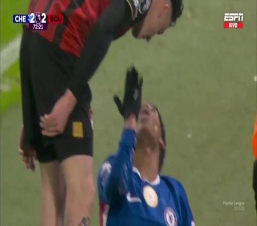 | 在切尔西对阵伯恩茅斯的比赛中,球队新星埃斯特旺表现十分活跃。而比赛中出现了一幕出人意料的画面:在被对手阿莱士-希门尼斯撞倒后,他竟向对方送出飞吻,还当面大笑。