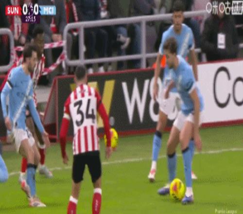 第17分钟,福登禁区外凌空抽射打门,皮球一脚踢偏
