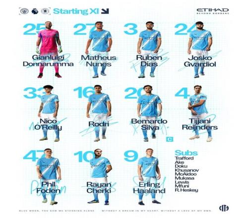 | 北京时间1月5日01:30,英超第20轮的一场对决。曼城坐镇主场,迎战切尔西。赛前,双方的阵容公布如下: